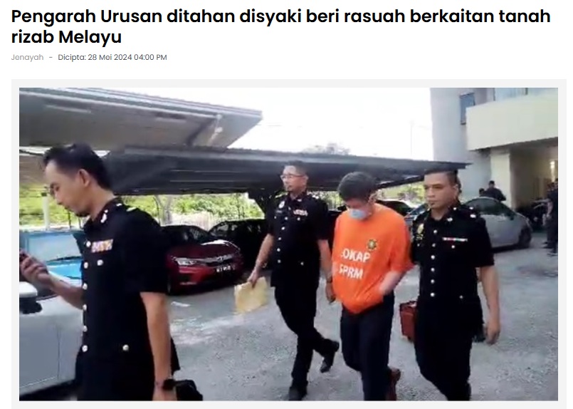 - SPRM menahan Datuk Do Jee Ming, pengarah urusan syarikat hartanah Lagenda Properties bagi membantu siasatan dakwaan memberi rasuah kepada pegawai tanah dan galian