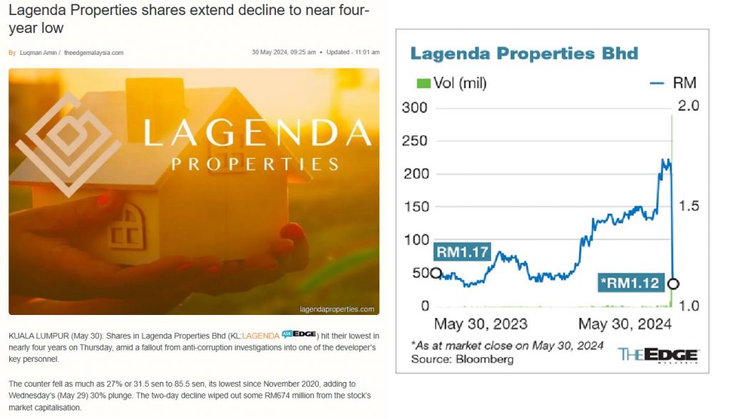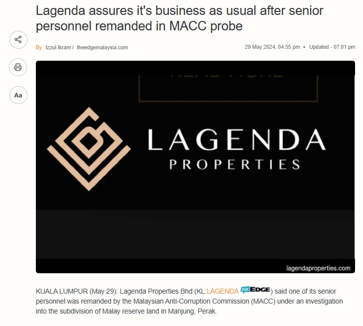 Lagenda Properties mengumumkan Pengarahnya “dibebaskan daripada sebarang penglibatan” dalam siasatan dan perkara berkaitan kini dianggap selesai