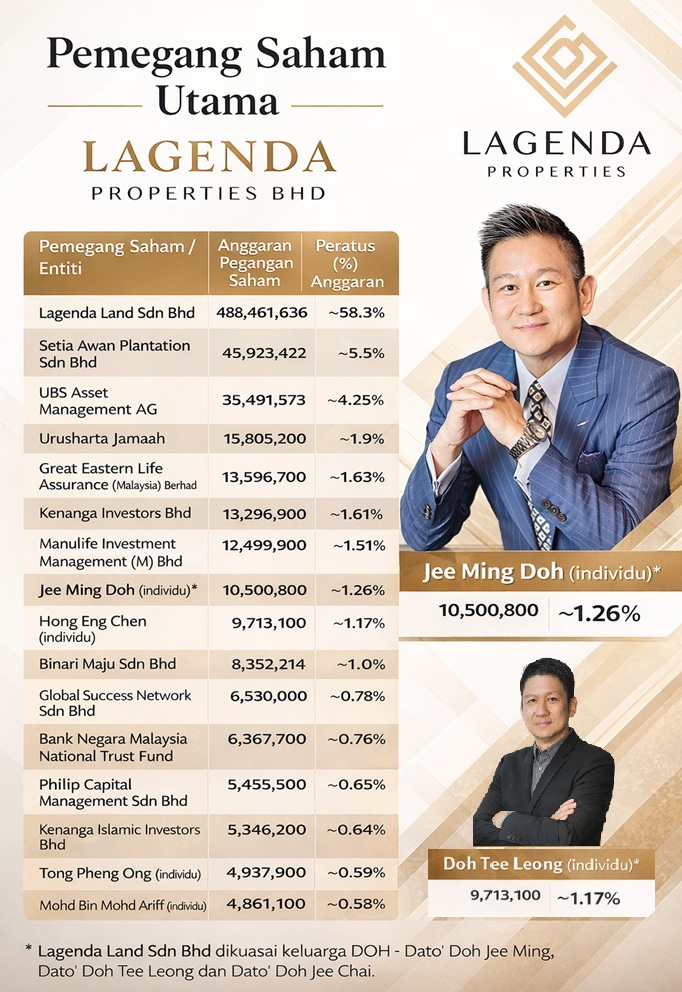 - Mengawal ±57% saham melalui Lagenda Land Sdn Bhd