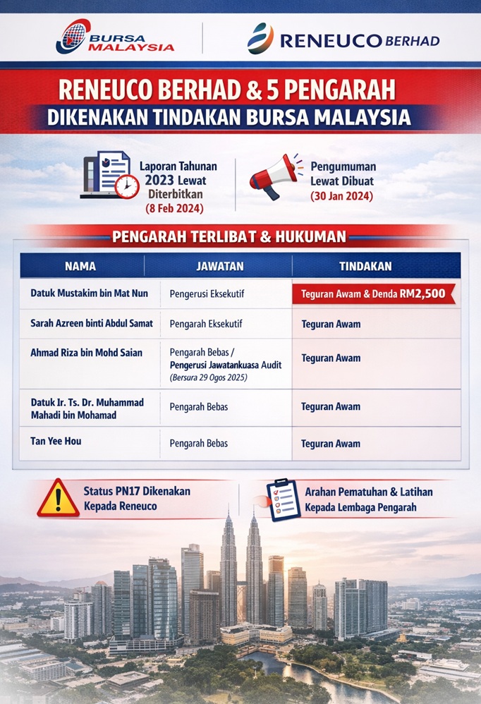 Bursa Malaysia Tegur Keras Reneuco, Lima Pengarah Dikenakan Tindakan Susulan Kelewatan Laporan Tahunan